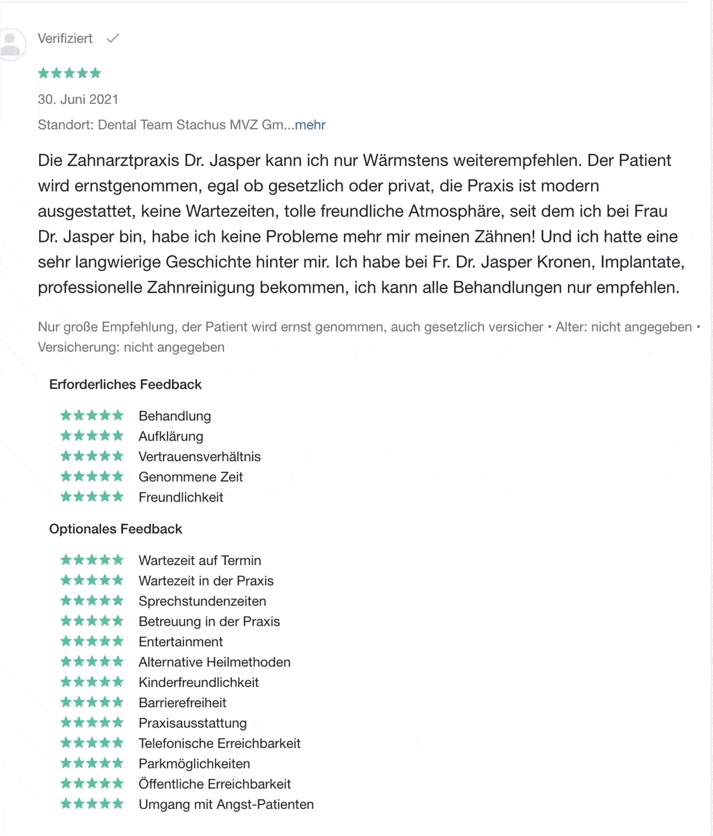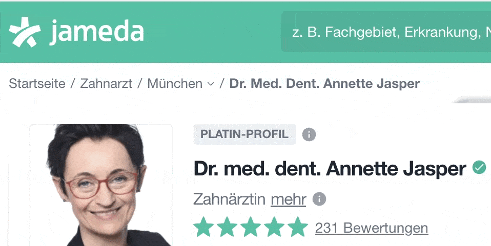 Dr. Annette Jasper hat diesen Test entwickelt und dabei ihre über 25-jährige Praxiserfahrung als Zahnärztin einfließen lassen. Dadurch hast du die Möglichkeit, einfach und schnell von zuhause aus herauszufinden, ob du von Parodontitis betroffen bist.